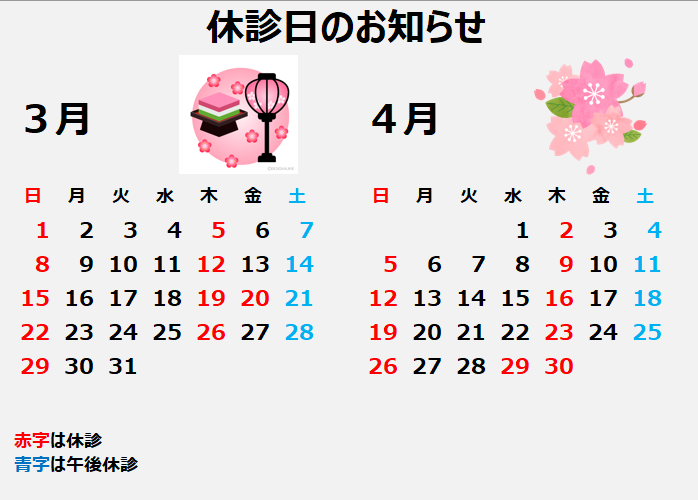 | 午前 9:00~12:00(最終受付11:45) | ○ | ○ | ○ | / | ○ | ○ | / |